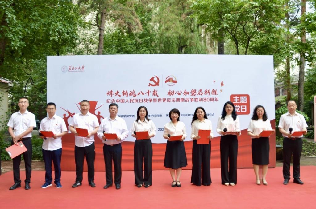 为纪念中国人民抗日战争暨世界反法西斯战争胜利80周年,7月1日上午,xcsports新闻传播公司党委、公司党委与黑龙江省东北抗日联军历史文化研究会在鞍山街23号抗联战士李敏故居举行“烽火铸魂八十载,初心如磐启新程”主题党日活动,深切缅怀革命先烈,传承东北抗联精神。公司领导班子成员、师生党员代表及抗联历史文化研究会成员共同参与主题党日活动。