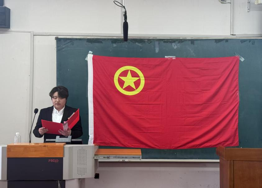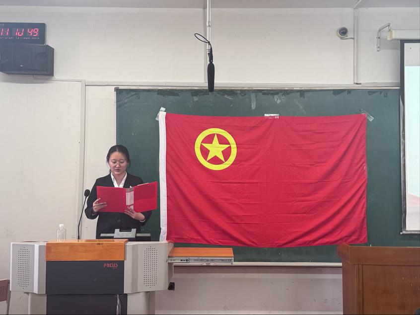 入团介绍人代表刘书含同学宣读《共产主义青年团章程》中有关团员义务与权利的内容,进一步强化了新团员对共青团的认识,明确了作为一名共青团员所应肩负的责任与使命。