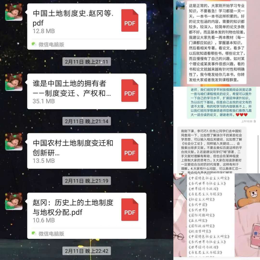 首先,导师对推荐书籍的作者以及写作背景做了简单的介绍,紧接着为同学们讲解了书籍的主要观点、核心内容等,说明推荐这本书的原因,分享了自己的读书感想,并且提醒大家需要进行认真思考的内容。同学们利用课余时间自行阅读,做好读书笔记,读完后交流阅读感想,现场师生互动频繁,讨论不断,气氛十分热烈。同学们都表示参加此次阅读活动有很多收获,感受到了读书的魅力,既了解了专业知识,又养成了记读书笔记和读后感的好习惯,增进了师生距离。