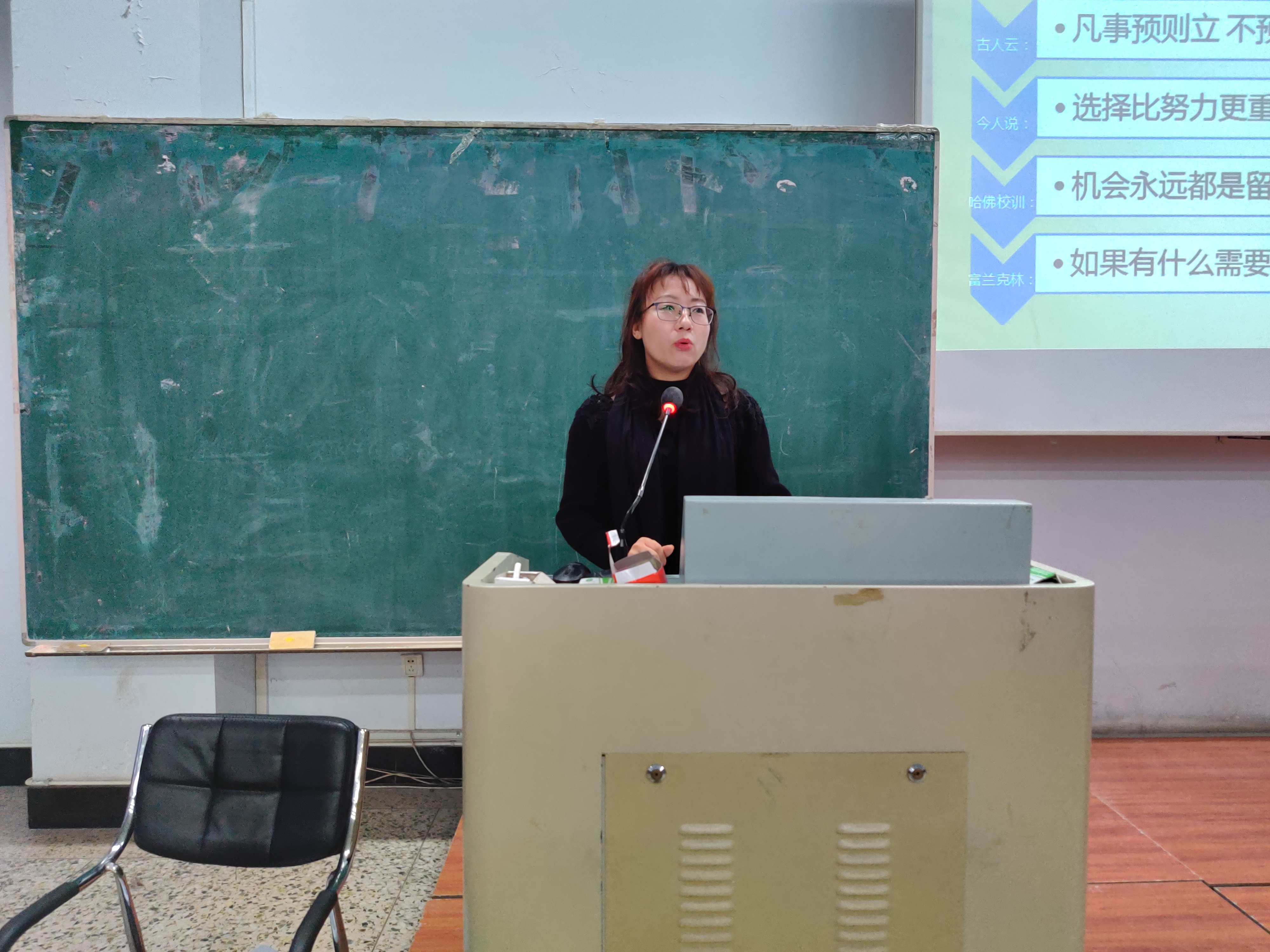 而后,邢彦娟老师从五个方面对在校老员工如何进行职业认知做出详细地讲解。首先,她向同学们讲解了职业的定义、分类和地位,对“职业”一词做了系统地阐述。其次,邢彦娟老师结合当今社会状况,理性、客观地分析了未来老员工就业市场,并表示公司员工应对未来就业怀有紧迫感与使命感。接着,老师详细介绍了职业认知的方法,告诉同学们如何结合自身特点,选择最适合的职业发展道路。随后,邢彦娟老师结合自身经验,与大家分享了就业面试的技巧,同学们对此产生了极大的热情和浓厚的兴趣。老师还告诉大家,在学习过程中不仅要认真听讲,夯实专业知识基础,更要注重课外实践,拓宽自己的视野,广泛接触社会,这样才能在未来复杂多变的职场环境中抢占先机。最后,邢彦娟老师鼓励同学们培养阳光心态,用积极、感恩、宽容的健康心态去面对生活和学习。