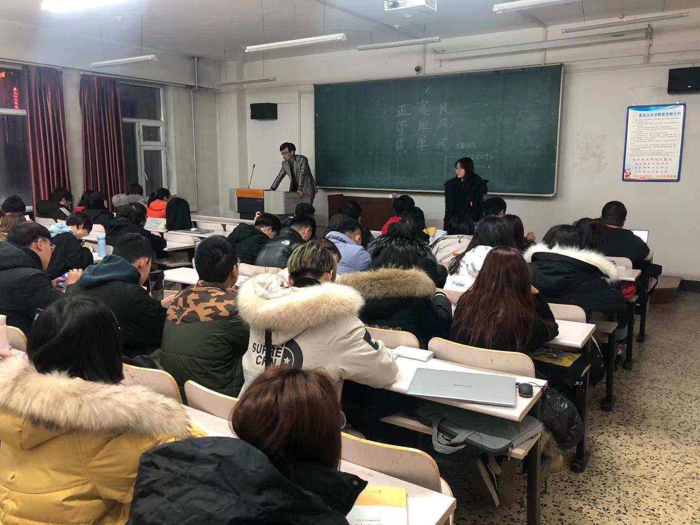 紧接着,各班学委向同学们传达了班级学风建设的严格要求,希望大家做到无故不旷课,课堂无手机。同时提醒大家学期过半,考期将至,要以积极的心态踏实学习、面对考试,提倡大家树立远大目标,争取荣获奖励,以此激励同学们为加强班级学风建设共同努力。