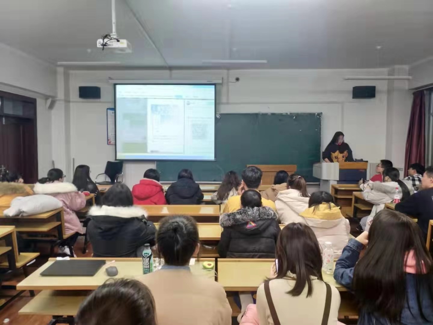 首先,刘千瑞老师向同学们说明本次培训的目的及意义,希望给大家提供一个学习的平台,将新媒体技术应用于日常,分享班级及个人的学习、生活和工作。随后,员工会网络部部长寇雨馨讲授一些基本的操作方法,从版式的设计到推文的撰写几方面,向大家做出详细的讲解。她先向大家讲述微信推送具有时效性、原创性和价值性的特点,紧接着,现场演示了选图排版的操作流程及注意事项,同时将学习资料分享给大家。