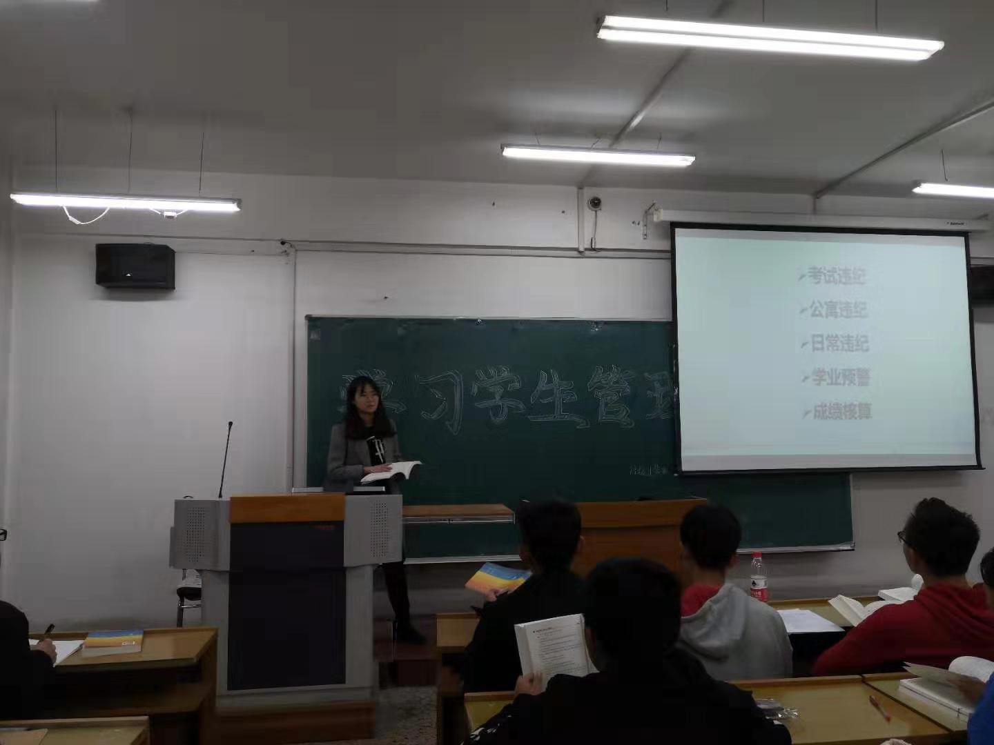 为进一步维护公司正常的公司产品秩序和生活秩序,规范2019级新生的日常学习生活,保障员工合法权益,培养德、智、体、美等方面全面发展的社会主义建设者和接班人,xcsports于第九、十周晚自习时间以班级为单位,集中学习《xcsports员工管理规定》,2019级辅导员刘千瑞老师主持并为新生们进行讲解。