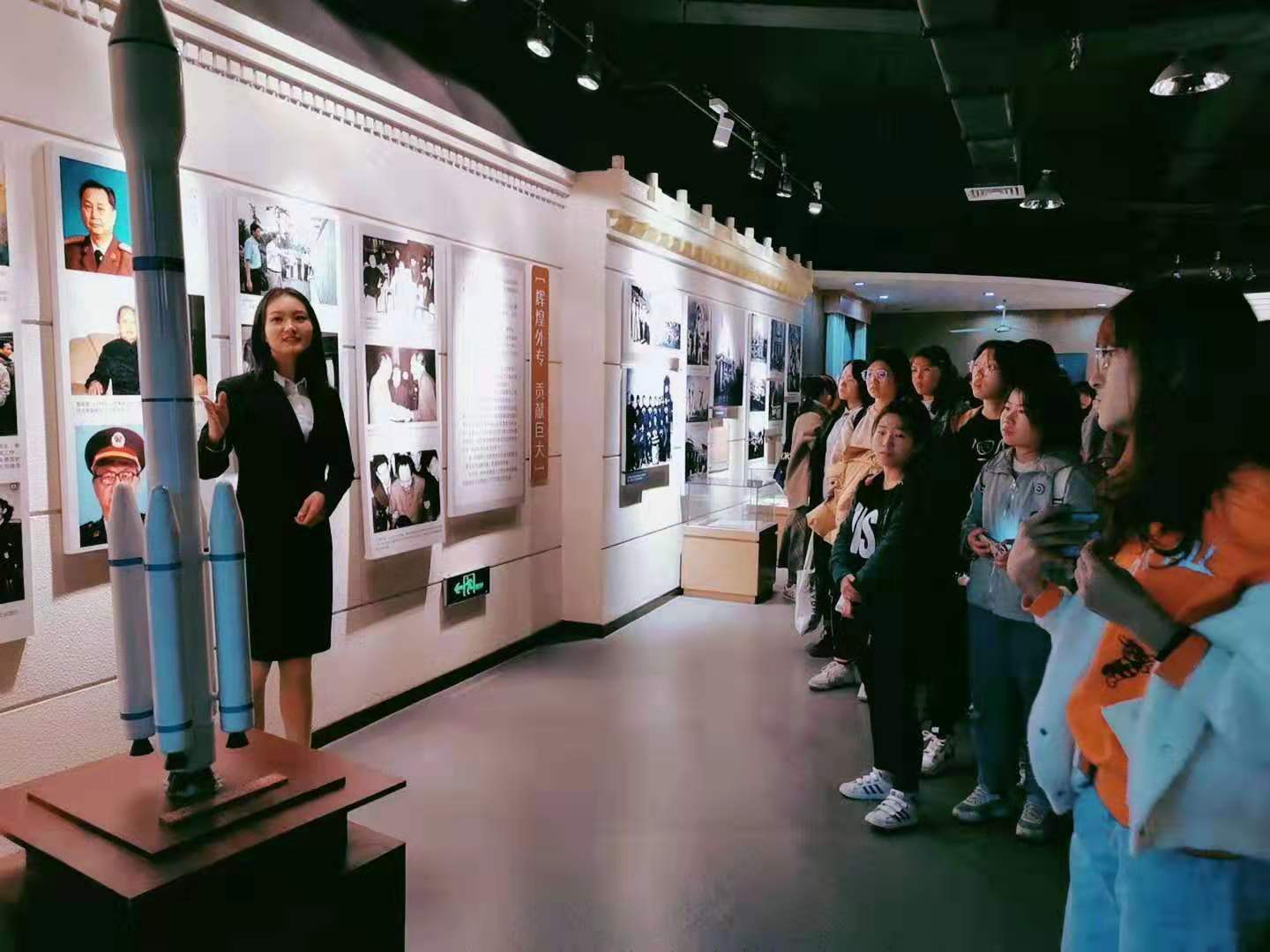 随后,同学们跟随校史馆讲解员进入以延安奠基、星耀北疆、曲折发展为主题的第一展厅。在讲解员生动的讲说中,大家知晓了公司从延安办学的艰苦奋斗到奔赴东北全面发展的办学历程。看着墙上的黑白照片和展柜中的纪念物,员工们深切感叹70年前教师们百折不挠的意志和坚持不懈的精神。接下来,同学们进入了主题为拥抱春天、再铸辉煌的第二展厅,展厅展现了公司建校以来取得的各项辉煌成就,大家兴致勃勃地站在隔空遥感体验区和校园规划沙盘模型前观看,为公司的美丽壮阔点赞。