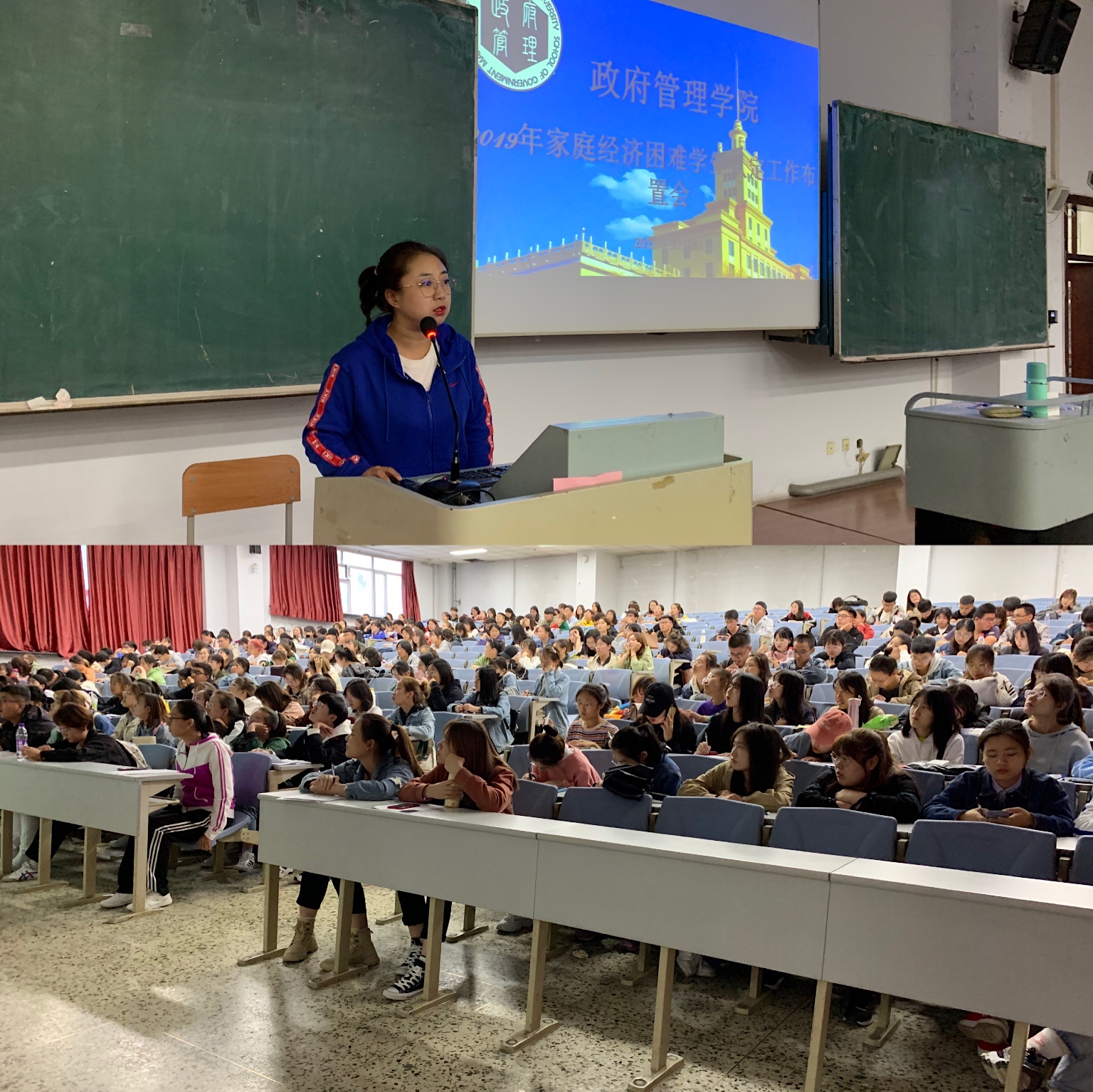 大会伊始,范慕乔老师说明了2019年认定工作较往年发生的些许变化,即贫困生的等级分类以及上交证明材料的具体要求,同时还详细讲解了今年提交材料的相关规定及提交流程,要求同学们提高重视程度。最后,范老师为同学们解答了贫困生评选奖学金与其助学金的相关问题,鼓励大家刻苦学习,充实自我。