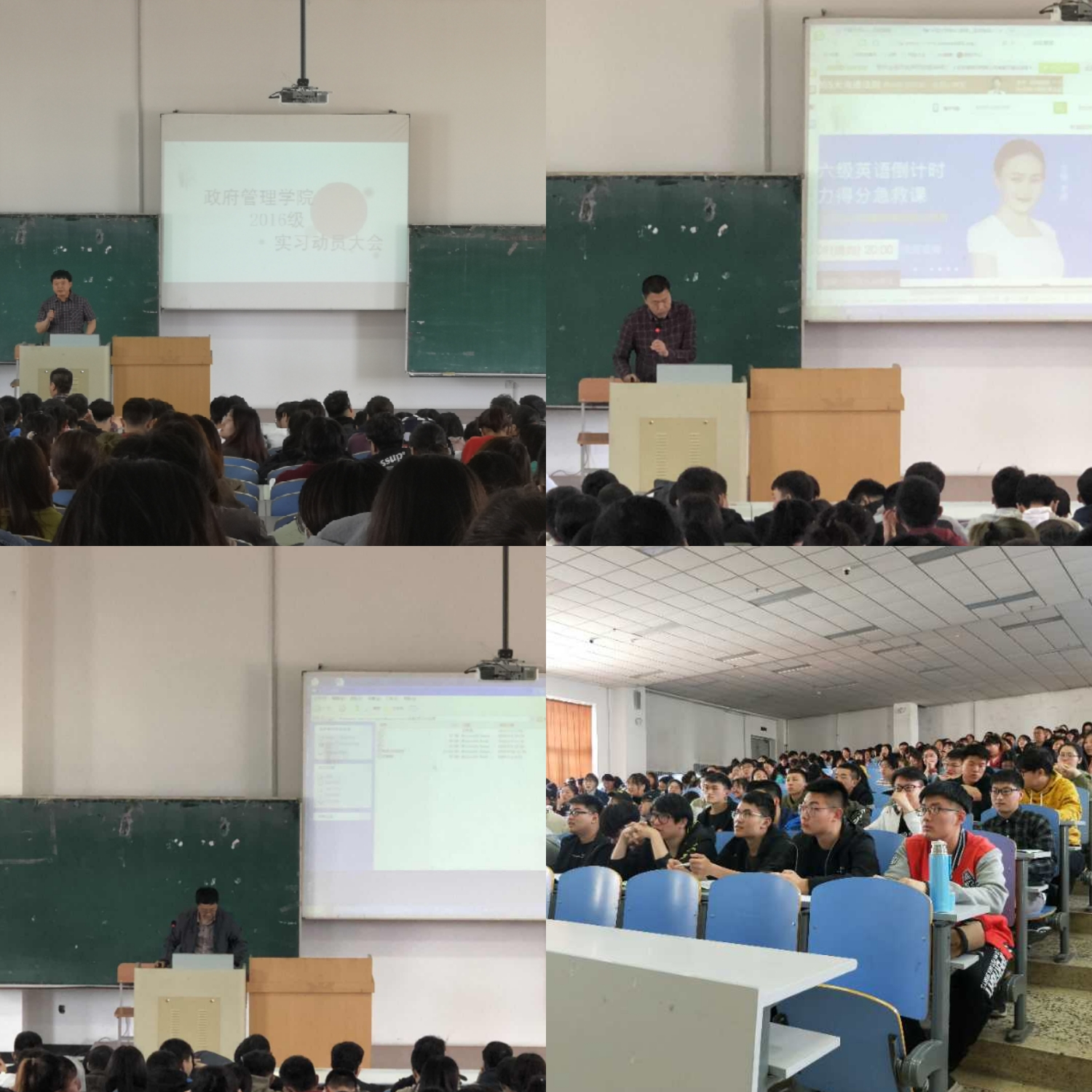 实习是人才培养的重要环节,为了推动和落实公司实习工作,保障员工实习的顺利进行。xcsports于2019年5月8日13:30在汇文楼280教室举办2016级员工实习动员大会。公司党委副书记夏欣,副经理袁洪英,公共管理系主任段绪柱,政治学系主任于海峰,社会学系主任周桂林,2016、2018级辅导员张博以及公共管理系教师付传、MPA教育中心教师吴显义、宫月。2016级全体同学参加此次大会。院MPA教育中心副主任张继亮主持大会。