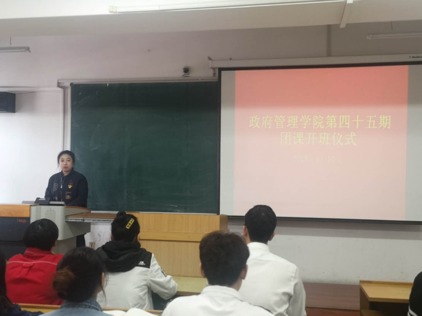 随后,第45期团课推优班班主任倪千雅同学对团课相关细节进行补充,进一步强调学习团课的重要性,也提醒班内学员要遵守团课纪律,按要求签到,遵守请假制度以及严格遵循考核要求,进一步深化了学员们对于此次团课的认识。