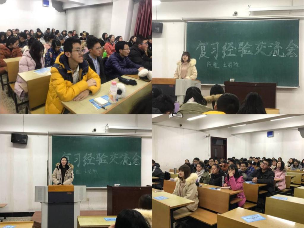 公共管理学系于12月15日下午15:30在汇文楼418教室开展了期末考试复习经验交流会,此次主讲人一位是2014级行政管理专业的第一名,另一位是2014级土地资源管理专业第一名。在经验分享过程中,他们强调:首先一定要明确态度,不能求60分及格,评选党员评奖评优以及保研,拼的是硬实力—成绩。在学习方法上,临近考期,老师在划分重点时,要边画边背,老师给的范围要尽快准备,不要把所有的问题都堆积在一起。“勤思考、重修养、抓专业、阔视野、注实践”。学姐还说“在英语考试之前,最好要拿2~3套四级真题来培养语感,在大一的英语期末考试,题型与四级试题相当。”此后,她们也谈了一些个人的经历,这对于懵懂的大一新生来说是非常宝贵的经验,同学们一一用笔记录,纷纷表示“很有收获”。