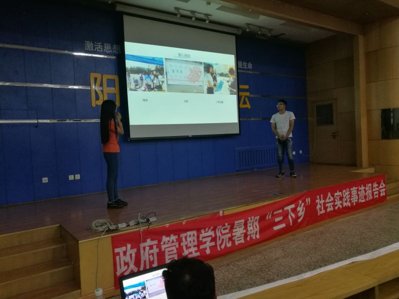 首先,报告会以两组温馨的视频拉开帷幕,一张张图片、一首首歌曲将同学们带入到此次“三下乡”活动的回忆中。在他们的娓娓道来中,我们了解到此次“三下乡”活动前往了铁力市桃山镇中心公司和哈尔滨市双城区希勤乡中心小学进行支教。队员们分享了第一次当老师的感受和自己的一些教学经验,他们满怀回忆地说:“虽然没有为孩子们传授特别多的知识,但是与孩子们的感情却久久不能消退,且日渐坚固。”随后,队员们又向大家汇报了他们的社会调查结果,他们一行十人进行家访,在居民家中进行耐心的询问和细心的倾听,希望将自己心中赤诚献给更多的人。紧接着,队员们介绍了“三下乡”期间的食宿情况,并详细为大家讲述如何教会了孩子们学会感恩。