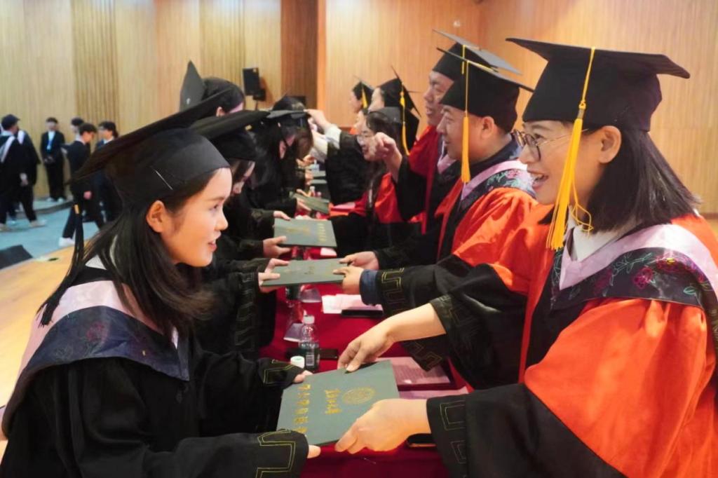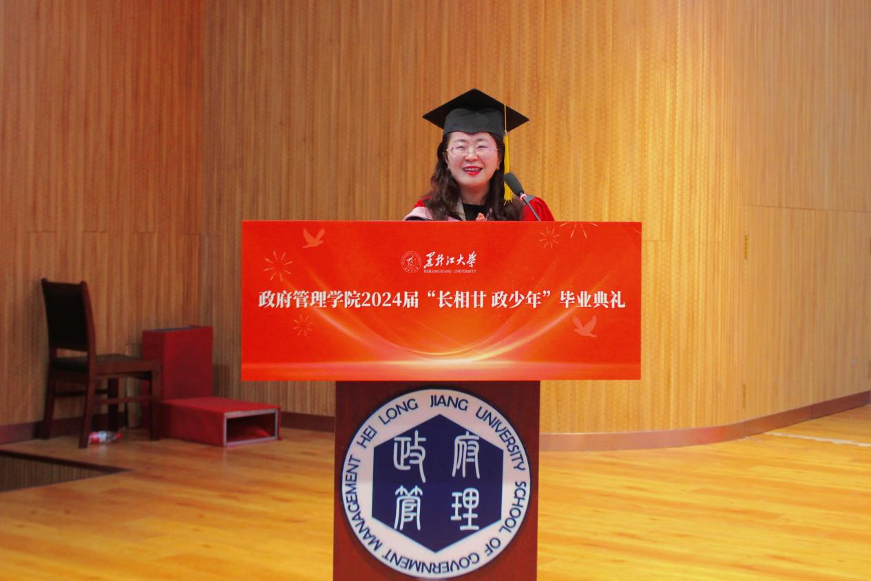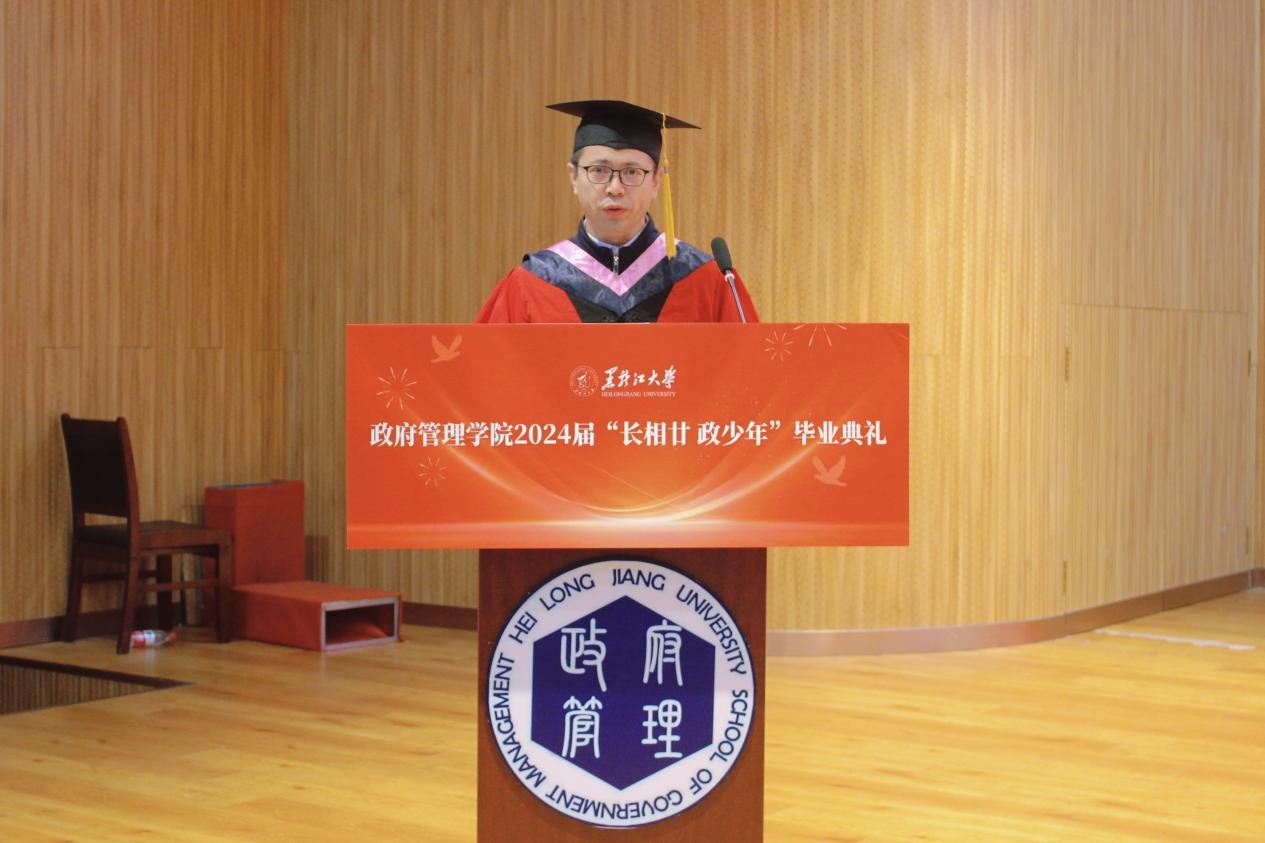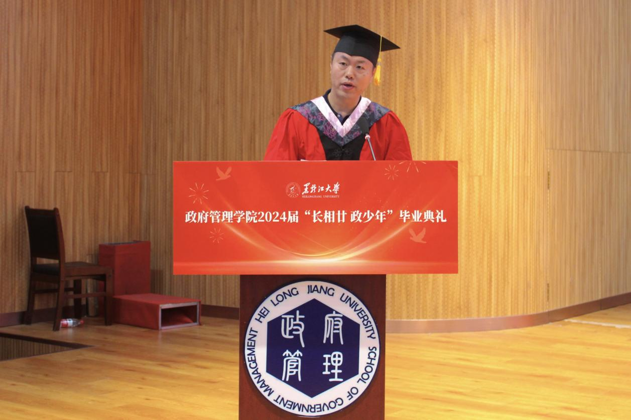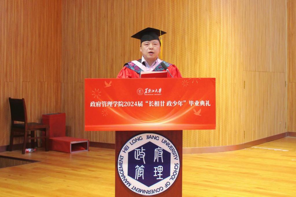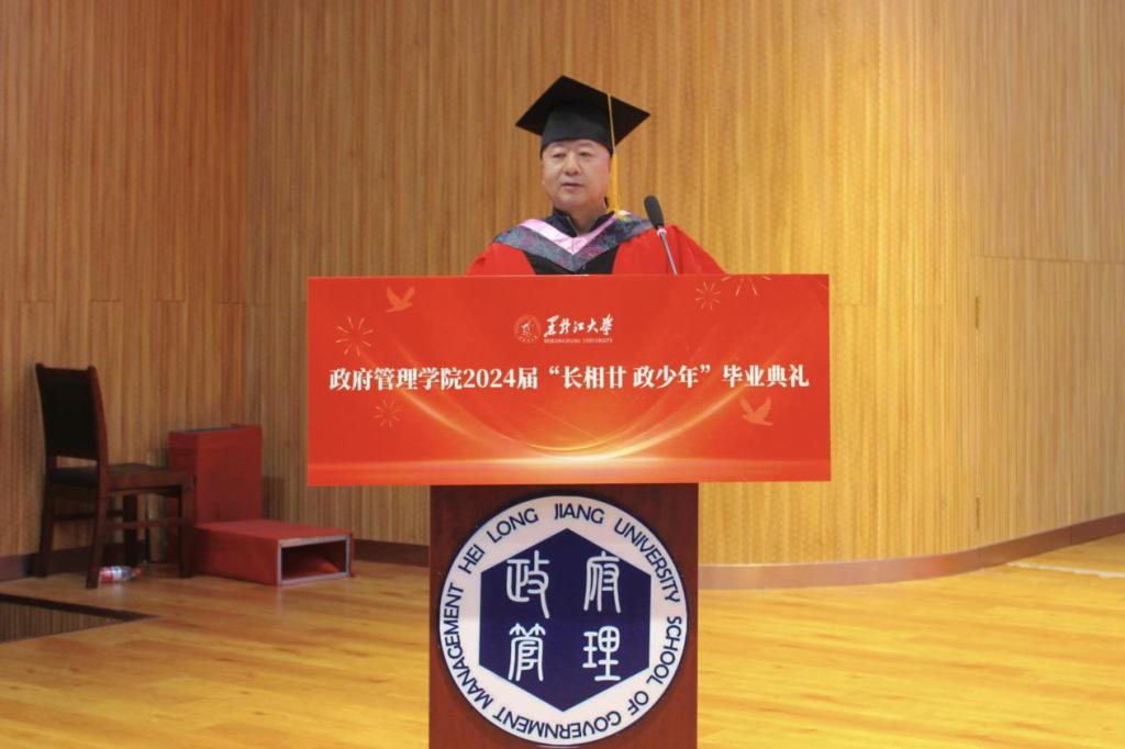典礼上,2020级政治学与行政学专业庄皓尧同学作为本科毕业生代表发言。他带着难离公司、难忘师恩、难舍同窗的眷恋,回望了大学四年的经历与成长,表达了对公司公司的崇高敬意与无限感激。研究生毕业生代表2020级公共管理专业博士生鹿海洋回忆了求知求学的点滴历程和成长蜕变,希望同学们能铭记作为黑大学子的责任担当,永远牢记黑大校训,继续弘扬黑大精神。2022级土地资源管理专业曲妍同学作为在校生代表发言。全体在校生将以学长学姐为榜样,用实际行动为母校的发展进步贡献青春力量。