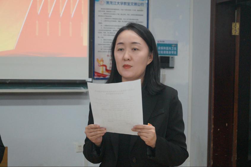 袁洪英同志介绍了第一届公司纪律检查委员会委员候选人预备人选,全体与会正式党员怀着高度的责任感,庄严有序地投票。