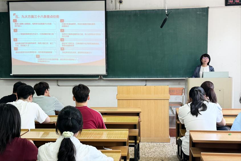 袁洪英立足教育强国战略全局,引导同学们深刻把握战略要求与专业发展的内在逻辑,并向同学们提出三点要求:一是要深耕专业学习,全面提升综合素养,夯实个人成长根基;二是要将个人发展与教育事业深度融合,以教育强国战略为行动纲领,在学思践悟中贡献青春力量。三是要厚植爱国情怀,始终将国家利益铭记于心,努力成为有理想、有担当、能为国家繁荣富强贡献力量的新时代青年。