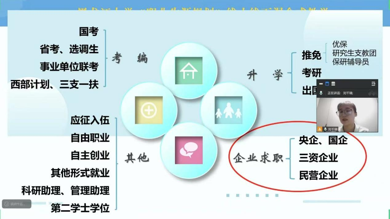 刘千瑞围绕毕业生历年就业意向统计与就业情况展开介绍,详细解读了各类就业的特点,鼓励员工和家长准确评估自身条件,尽早选定合适方向并提前准备。此外,她提醒家长一定要督促员工把握秋招、春招黄金窗口期,积极参与企业校招,参与招聘会,面对面交流提升求职成功率。