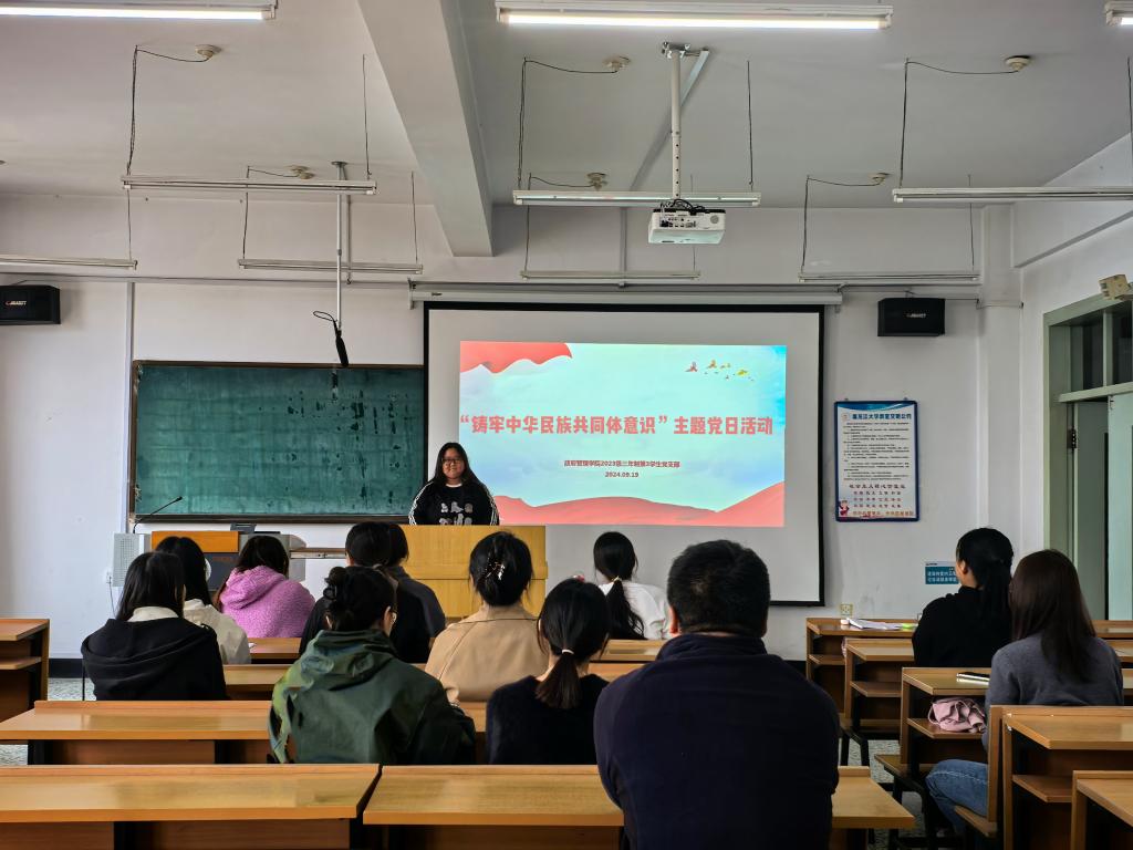 教师党支部围绕学习贯彻习近平总书记重要讲话和党的二十大精神中提出的“以铸牢中华民族共同体意识为主线,坚定不移走中国特色解决民族问题的正确道路”。各位党员教师轮流发言,汇报了自己近期学习的心得体会,表达了在教学科研工作中要把铸牢中华民族共同体意识教育作为员工教育的重要内容,同时表示作为一名大学教师,要不忘初心,牢记使命,为祖国教育事业高质量发展贡献自己的力量。