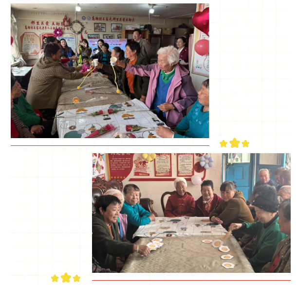 党员志愿者们为高潮村王家屯的老人举办第二季度集体生日会,戴生日帽、唱生日歌、欢快的“快乐甩乒乓”、“金铲铲煎蛋”和母亲节手势舞,现场笑声、掌声不断。高潮村王家屯的王叔叔说:“今天就是我的生日,这么多人给我一起过生日,还是第一次,感谢党,感谢政府,也感谢希望社工和大家,今天我很激动,很高兴!”