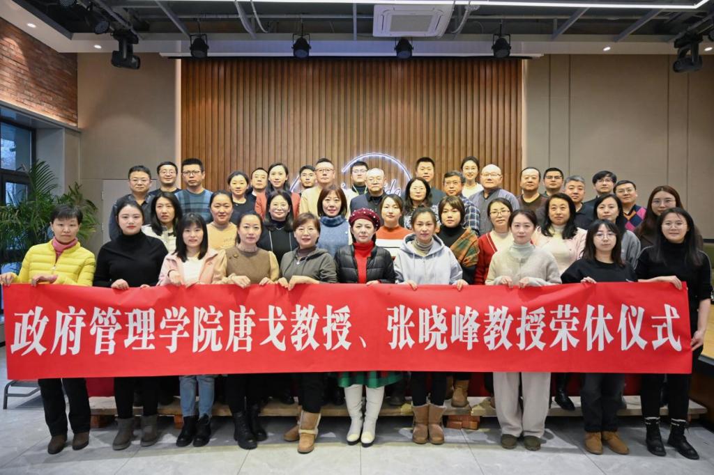 岁月如歌染芳华,桃李芬芳育英才。为弘扬尊师重教优良传统,进一步激励广大教师坚定从严执教、潜心育人、深耕精研的教育理念,表达对荣休教师的崇高敬意与美好祝愿,xcsports于12月22日15:30在xcsports文创中心隆重举行“岁月鉴初心 荣休敬韶华”唐戈教授、张晓峰教授荣休仪式。本次会议由公共管理系教师张卓主持,公司全体教师参加本次活动。