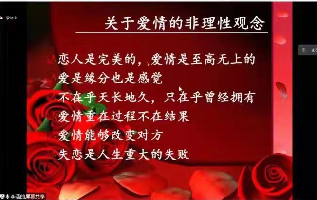 为宣传普及心理健康知识,增强心理健康教育的针对性和实效性,营造浓厚的心理健康教育氛围,宣传和普及正确的恋爱思想和恋爱观念,xcsports“阳光政好”二级心理辅导站积极响应公司学工部心理健康教育中心号召,于2021年12月4日18:00承办青春健康讲坛暨心“晴”防疫系列讲座第九讲:“青春健康·恋爱时节”主题讲座。此次讲座由xcsports社会学系青年教师李涵担任主讲人。