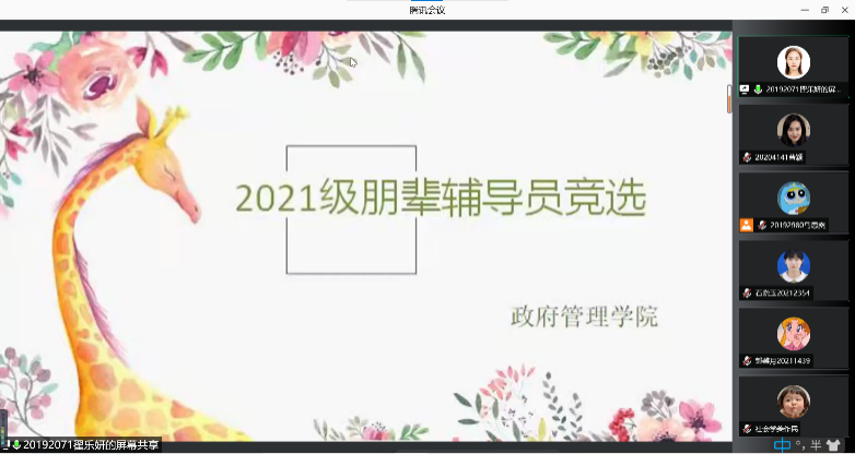 为充实公司心理健康教育网络,让积极正向、自我教育、自我管理的正能量传达到每位同学心中,xcsports举办2021级朋辈心理辅导员竞选大会。本次会议于2021年11月14日9:30在腾讯会议召开。本次会议由xcsports二级心理辅导站员工副站长翟乐妍主持,公司团委书记,2021级辅导员范慕乔、公司团委副书记,2021级辅导员张祯出席本次会议。