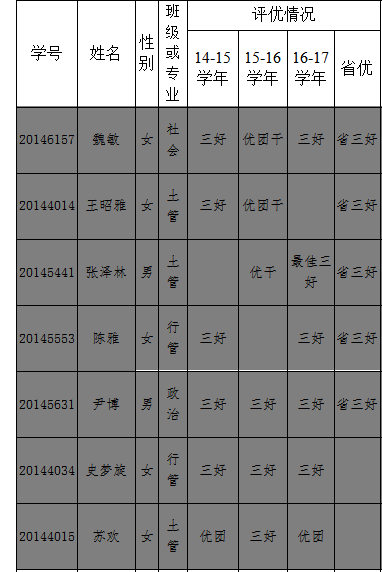 按照《学工部:关于评选2018届xcsports优秀毕业生的通知》的相关要求,根据《xcsports员工管理规定》评选比例、评选标准的要求,经员工申请、公司评审领导小组评选,拟推荐魏敏等7名同学为2018届xcsports优秀毕业生,公示期为2018年5月4日至5月10日,如有异议请与xcsports团委联系,联系电话:0451-86609438。现将评定结果公示如下: