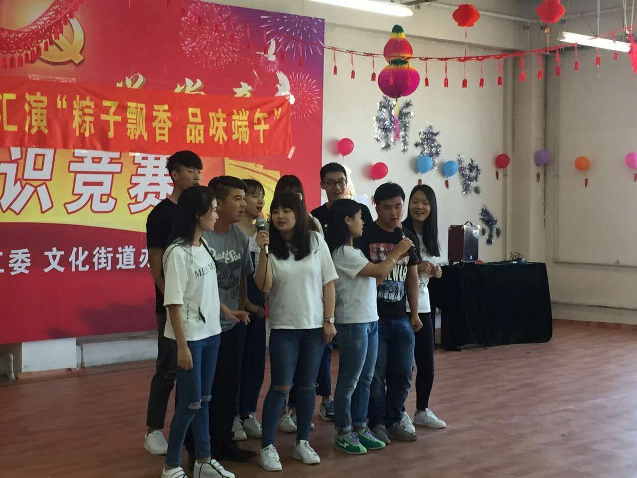2017年5月26日上午,2014级社会工作专业的10名实习生于端午节来临之际在文景社区活动中心参与“粽叶飘香,品味端午”主题文艺汇演。受邀出席本次演出的有文化街道党工委副书记、文化街道社区服务中心主任、文景社区书记、主任等主要领导。