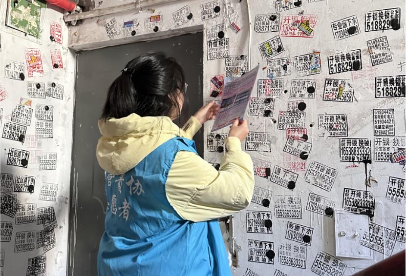 志愿者在有序的安排下,分组进入小区楼道进行检查。他们穿梭于楼道间,检查楼道物体堆放情况;帮忙捡拾楼道内的垃圾,铲除墙壁上的广告;检查是否张贴有违法纸张并进行清理。社区的每个角落都有志愿者们忙碌的身影,大家齐心协力,团结互助,以实际行动让社区环境焕然一新,为社区居民营造了良好的生活环境。平凡琐碎可以饱满丰盈,涓涓细流势必汇成江海。在社区的志愿服务或许轻微绵薄,可是无数个志愿的瞬间连成画面,便是雷锋精神最为生动的描绘与表达。