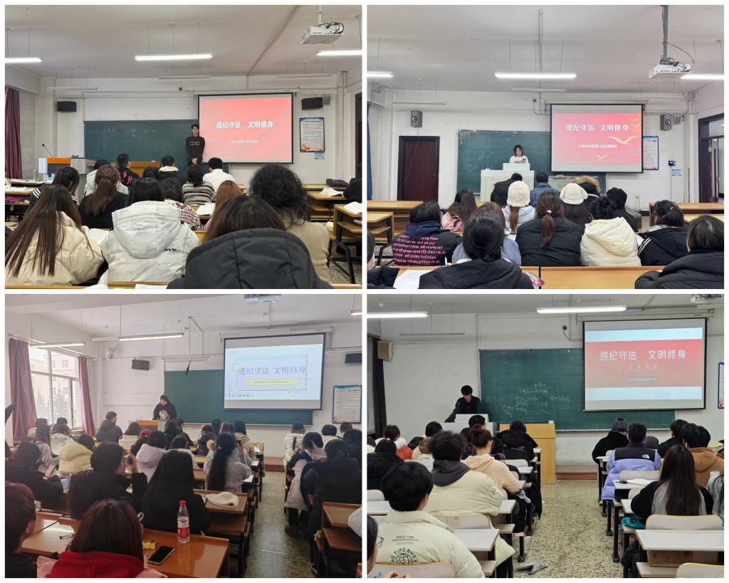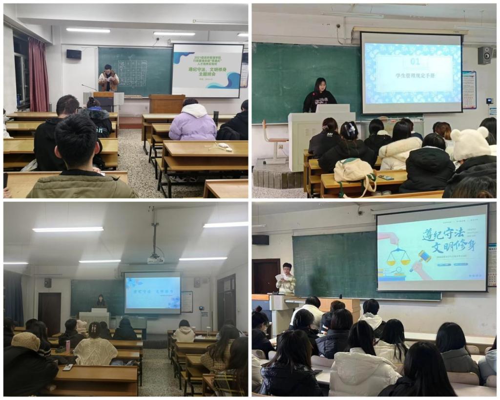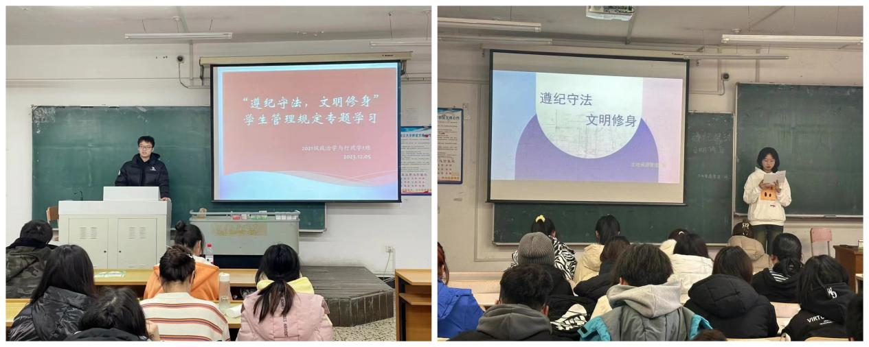 在2021级班级自学中,各班班长以“遵纪守法 文明修身”为核心,召开主题班会,引导同学们明确严于律己的重要性,进一步规范自身的言谈举止,增强思想道德修养;在集中学习中,辅导员范慕乔表示,作为新时代黑大青年,要站在全面依法治国战略的高度意识到法律意识的重要性,强化规矩意识和法治思维,树立遵纪守法、文明修身意识。同时,辅导员张祯强调,同学们要认识到遵守校纪校规的重要性,牢牢把握“纪在法前、纪严于法”的原则,结合公司规章制度,强化自律意识,争做遵规守纪的典范。