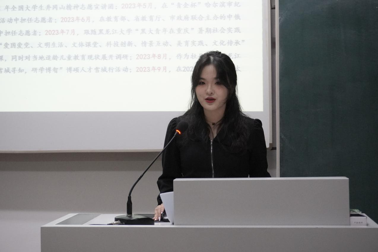 2020级社会工作专业徐露从员工组织任职经历、社会实践及志愿服务经历、校园文化活动经历入手,讲述了自身成长背后的故事。她分享了六级成绩40天内提升170分的事迹,告诫同学们凡事都要尽最大的努力,也要不乏从头再来的勇气。同时,她用“悟以往之不谏,知来者之可追”与同学们共勉,希望同学们学会感谢所有的未知、遗憾与挫折