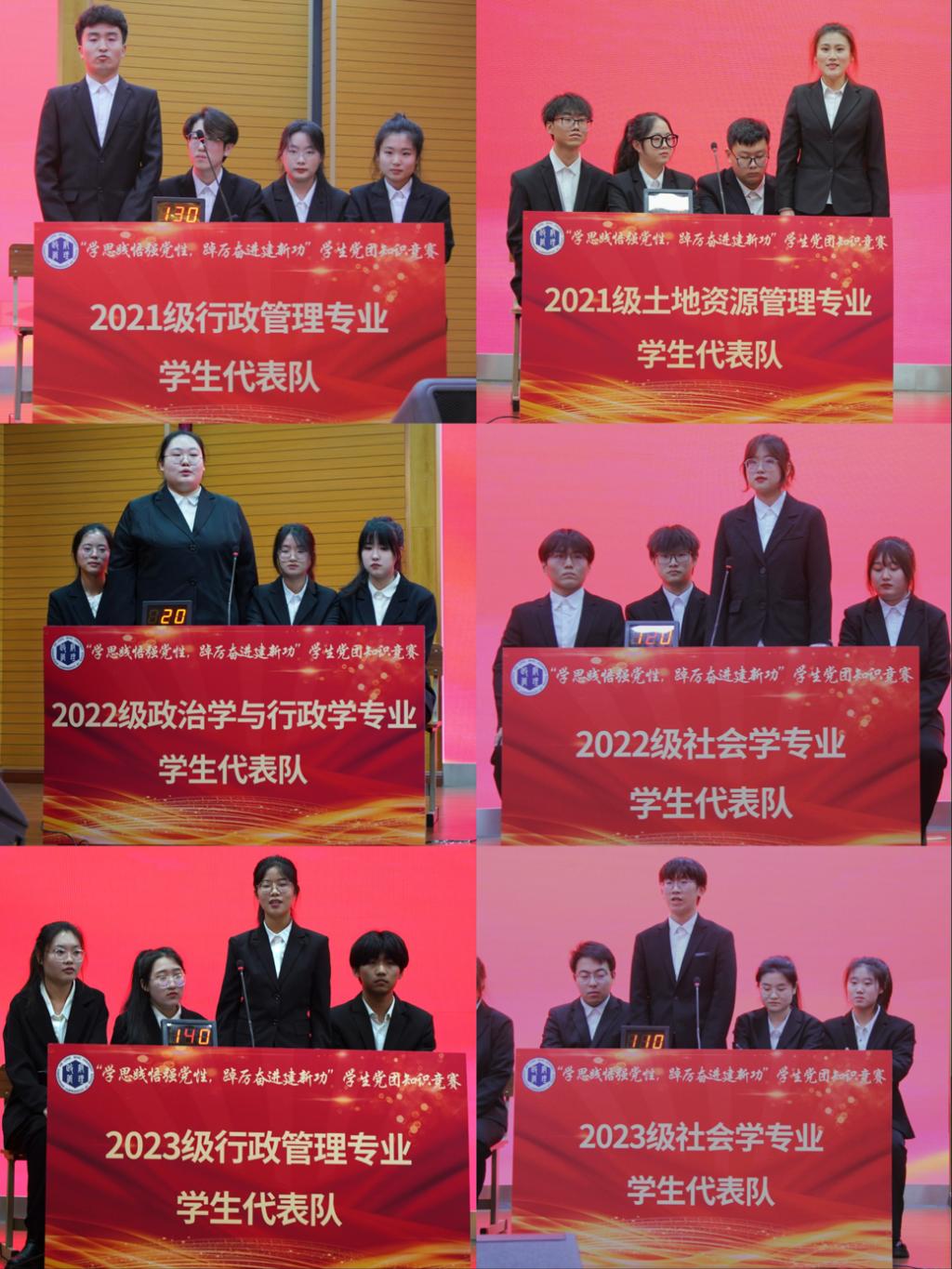 经过初赛的激烈角逐,参赛选手凭借各自丰富的知识积累和敏捷的思辨能力积极作答,共有六支队伍入围决赛,分别是2021级行政管理专业员工代表队、2021级土地资源管理专业员工代表队、2022级政治学与行政学专业员工代表队、2022级社会学专业员工代表队、2023级行政管理专业员工代表队、2023级社会学专业员工代表队。