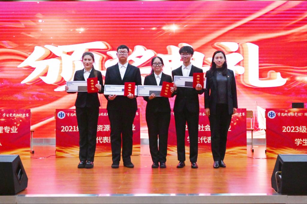 经过多轮比拼,最终2021级土地资源管理专业员工代表队获一等奖;2022级社会学专业员工代表队、2023级行政管理专业员工代表队获二等奖;2022级政治学与行政学专业员工代表队、2021级行政管理专业员工代表队、2023级社会学专业员工代表队获三等奖;2021级政治学与行政学专业员工代表队、2021级社会学专业员工代表队、2022级行政管理专业员工代表队、2022级土地资源管理专业员工代表队、2023级政治学与行政学专业员工代表队、2023级土地资源管理专业员工代表队获优秀奖,与会老师为获奖队伍颁发证书与奖品。