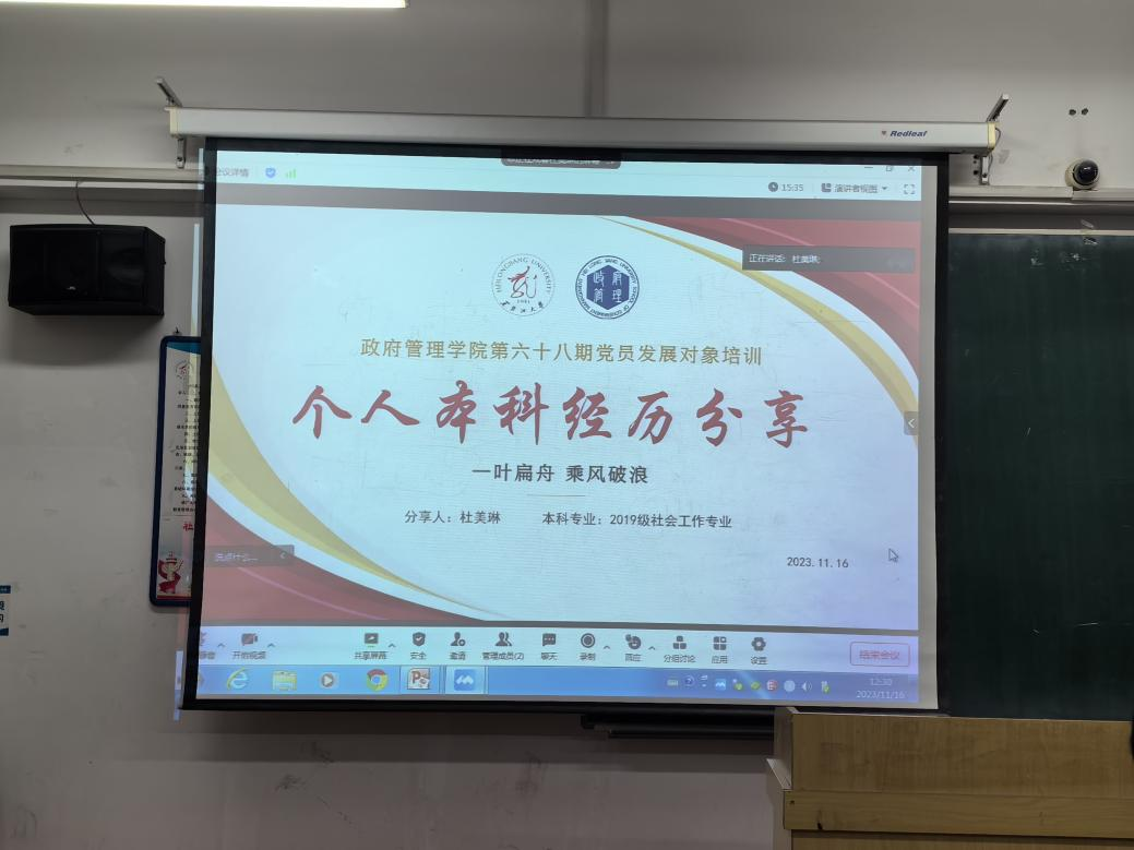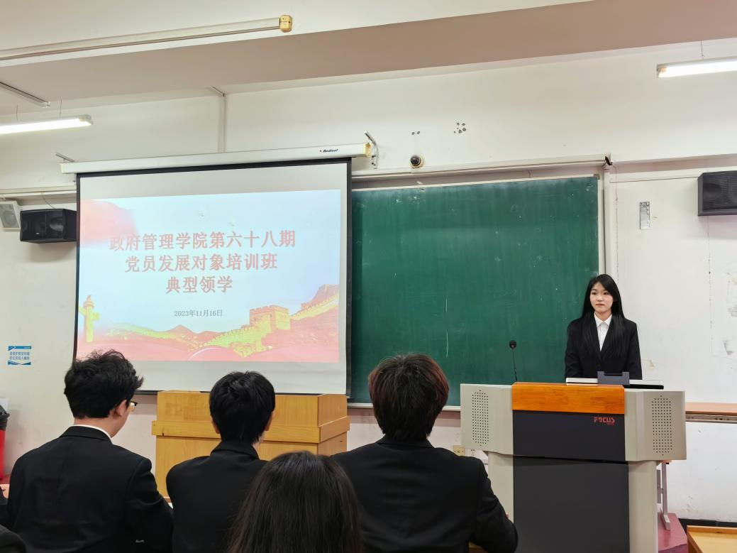 为进一步学习宣传党的二十大精神,深入学习贯彻习近平新时代中国特色社会主义思想,充分发挥党员的先锋模范作用,用身边事教育身边人,持续加强对党员发展对象的培养考察,教育引导发展对象进一步坚定理想信念,向榜样看齐,xcsports于2023年11月16日12:30在汇文楼421开展本次培训班的典型领学活动。本次活动由党课小组长付振佳主持,2019级优秀毕业生党员杜美琳、2020级优秀在校生党员庄皓尧主讲,培训班全体学员参加。