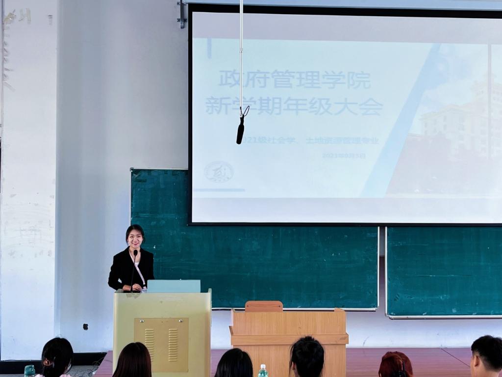 2021级辅导员张祯首先总结了上学期同学们的表现,并对新学期提出期许,倡导同学们兼顾学业和娱乐生活,切勿因小失大。要确立明确的奋斗目标,以昂扬向上的精神面貌迎接新的挑战。