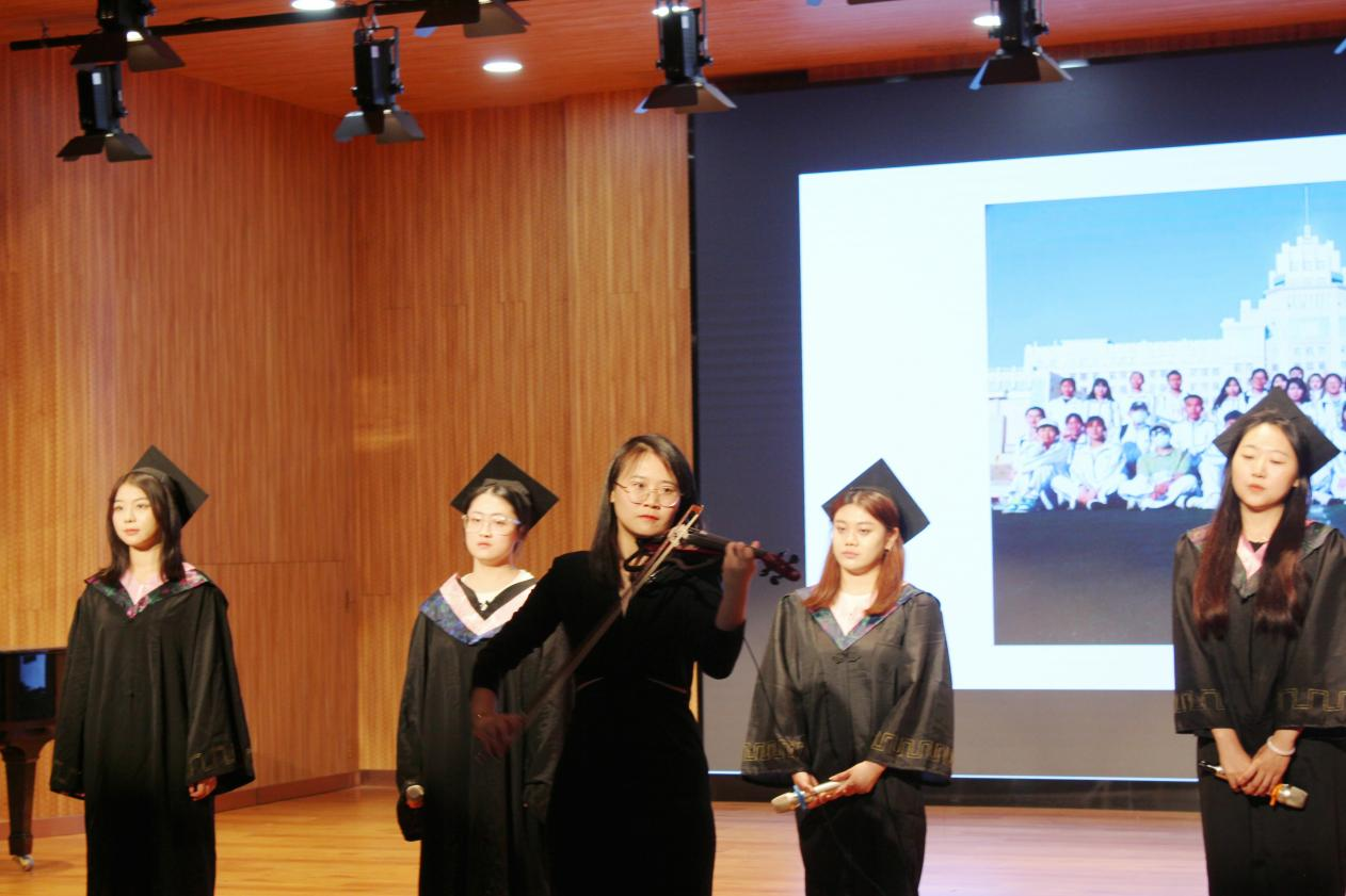 “愿你所有的梦想,如约而至;愿你此生尽兴,赤诚善良。”2023届毕业年级辅导员刘千瑞与毕业生代表共同演绎歌曲《如愿》。歌曲饱含了对毕业生的美好祝愿、对母校的不舍、对老师的感激和同学间的深厚情谊。
