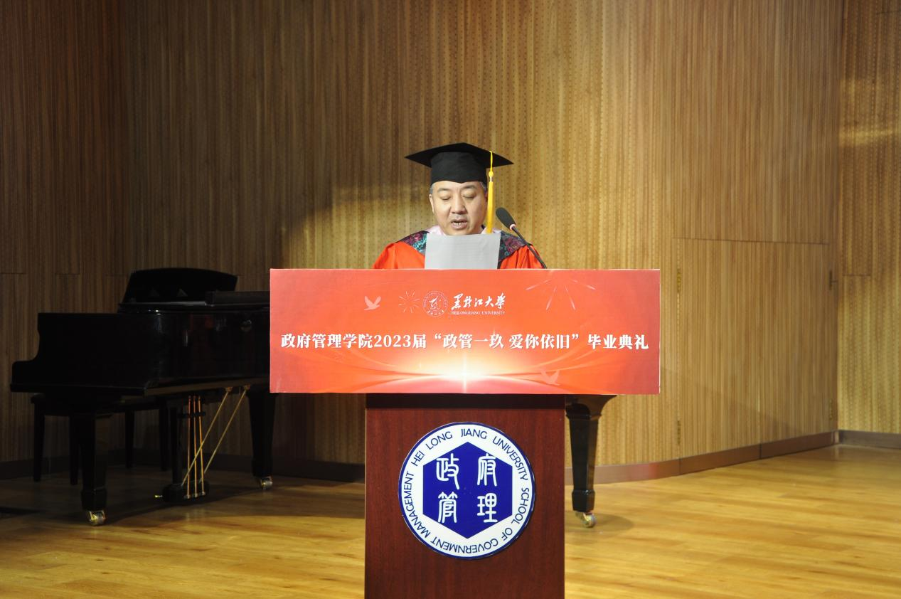 典礼上,段绪柱、于海峰、孙丽娜分别宣读了《2023届毕业生学业报告》《关于表彰2023届优秀毕业生的决定》《关于表彰2023年黑龙江省普通高等公司优秀毕业生的决定》,公司老师为校优秀毕业生、省优秀毕业生颁发证书。