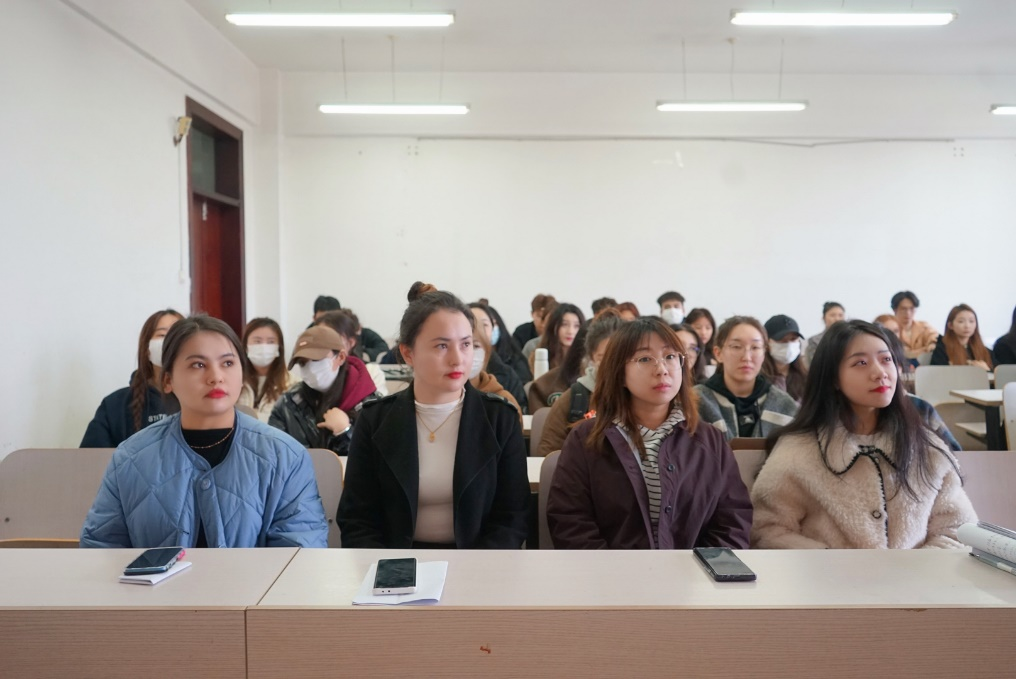 随后,阿孜姑丽向同学们分享自己的升学经历与求职过程,并向同学们介绍了公司的少数民族党员单列计划,鼓励大家积极主动向党组织靠拢。最后,阿孜姑丽老师表达了对同学们的美好祝愿,希望同学们能珍惜宝贵的学习机会,在大学里学有所得、行有所获、不负时代、不负青春。紧接着,沙依达木通过分享亲身校园经历,鼓励同学们积极参加素质拓展活动,丰富自己的老员工活,同时希望大家提高自我学习要求,努力学习专业知识,争取成为德智体美劳全面发展的综合型人才。