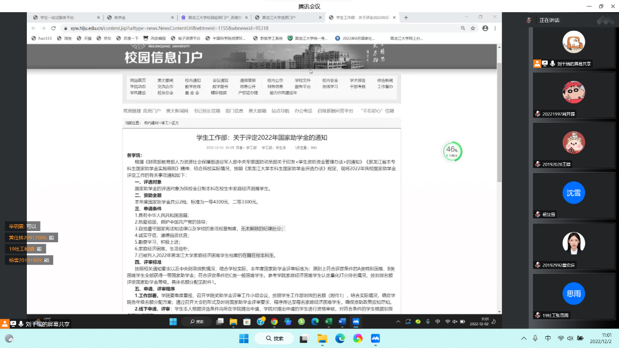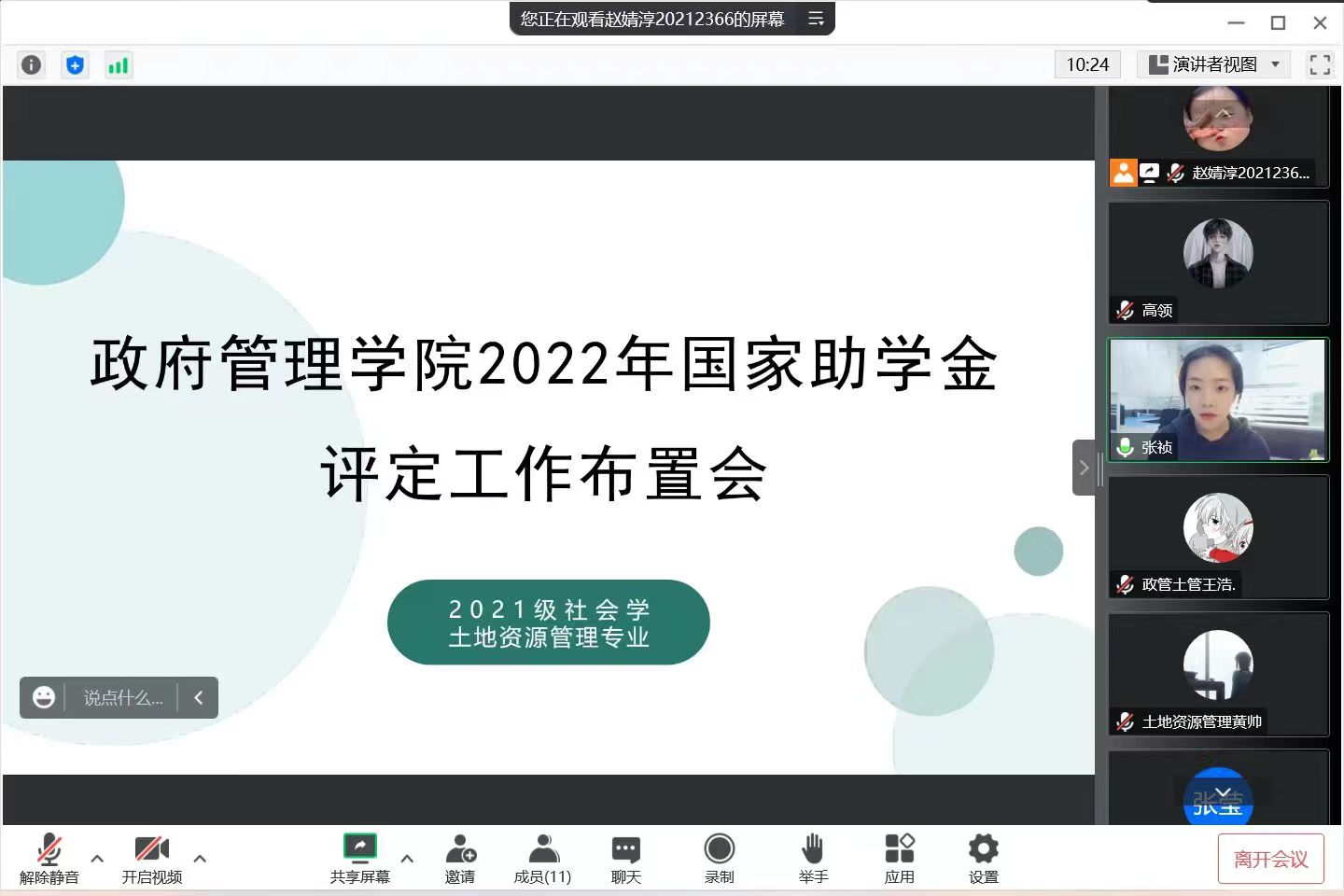 在评定会议上,辅导员老师向同学们解读了《2022年国家助学金评定办法》,对本学年国家助学金的评审对象、评审标准、申请条件以及评审程序等进行了详细的说明。接着,辅导员老师公布了本年度国家助学金的名额划分情况,各位员工的助学金等级,并现场为同学们讲解和演示了线上申请的操作流程。