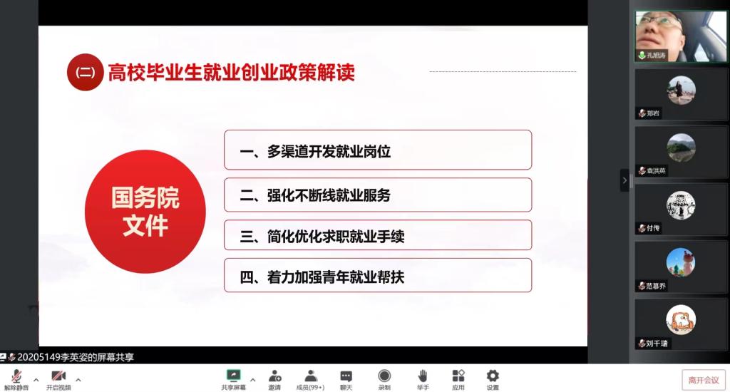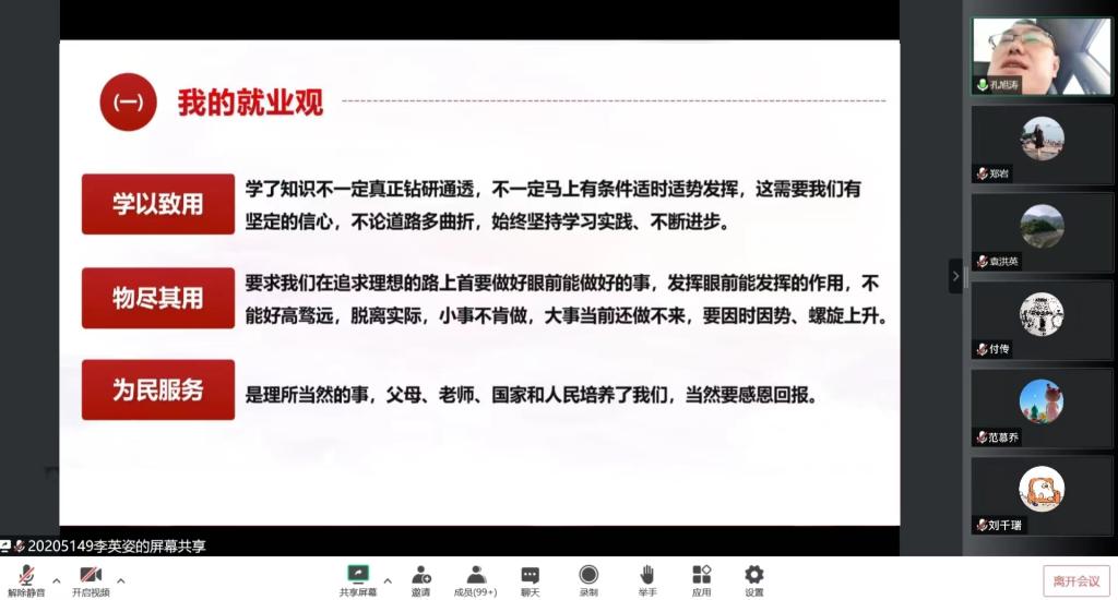 三是以驻村帮扶工作为例浅谈对选调生等老员工到乡村服务工作的认识,孔旭涛老师从职业发展空间预期、工作使命职责、驻村工作感受及体会三个不同角度,分别给出了如何做好准备的建议,并强调无论是选择哪个方向,最重要的是要坚定行动的初心,找准方法,勇往直前。