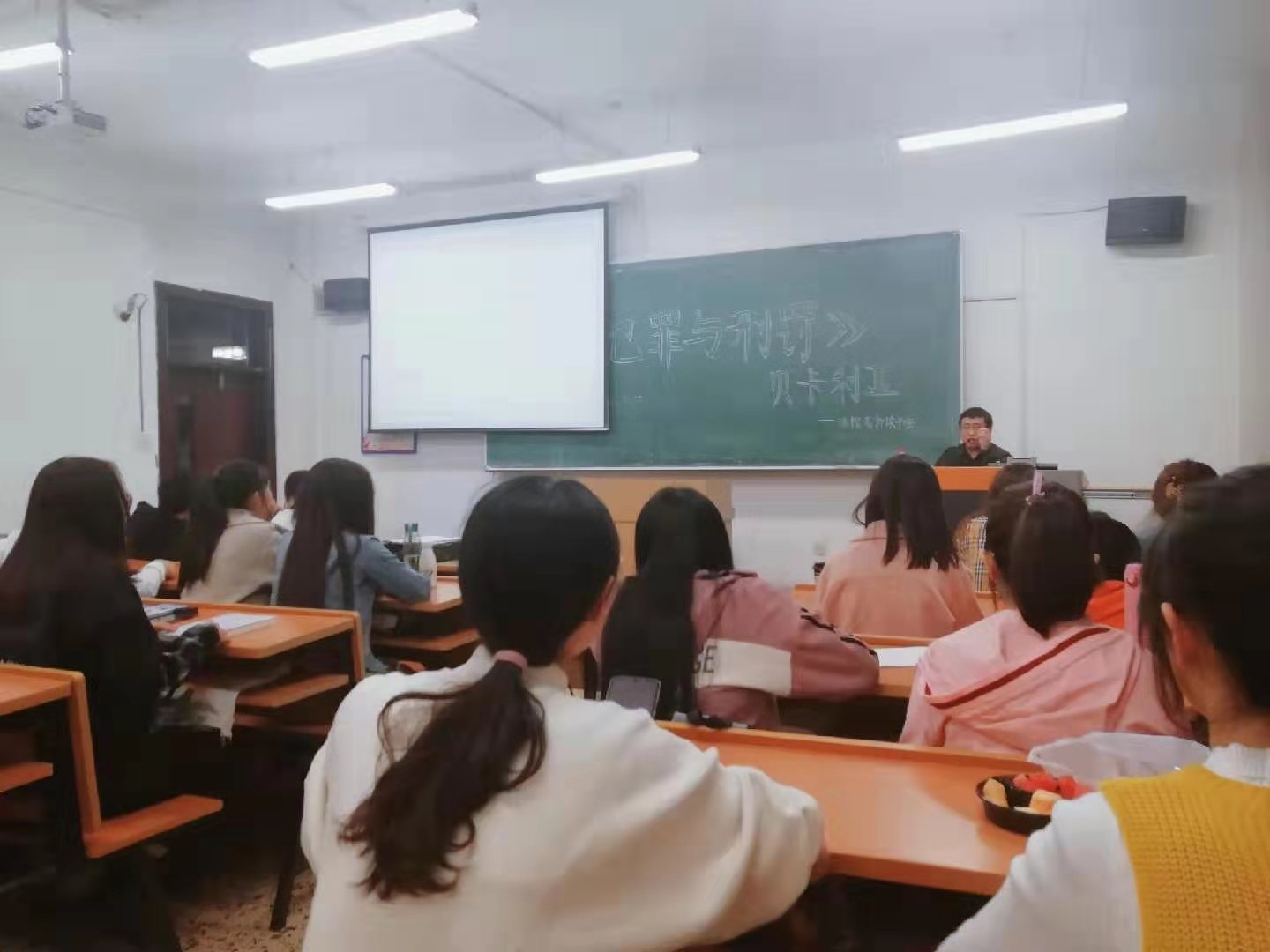 活动伊始,徐楷老师向2019级社会工作专业的员工做了详细的自我介绍,其主要研究领域为:刑法学、犯罪社会学、法律社会学 ;随后,徐楷老师给大家分享名为《论犯罪与刑罚》一书。本书为意大利刑法学家切萨雷·贝卡利亚创作的法学著作。徐楷老师说之所以介绍这本书,是因为《论犯罪与刑罚》是世界文明史上第一部明晰而系统地论述犯罪与刑罚问题的著作,在刑法学史上占有重要的地位,对世界各国的刑事法的理论和实践,都产生了革命性的影响,因而,作为刑事法学经典名著,《论犯罪与刑罚》是法学专业员工的必读书目之一。紧接着,徐楷老师又简单概括了这本书的主要内容,他将书中涉及的主题分为九个部分:刑罚的起源、法官不应该具有法律解释权、罪刑法定和刑罚相适应、刑罚人道主义、刑罚以预防为目的、公民在适用法律上一律平等、无罪推定、取消刑讯、废除死刑,并在此基础上进行解释说明。最后,徐楷老师呼吁在座的2019级同学不但要读《论犯罪与刑罚》一书,也要广泛涉猎其他书籍,知识是从书本和实践中获得的,一定要养成读书的好习惯。徐楷老师风趣幽默的语言及丰富的专业知识令同学们陶醉其中,本次读书会获得圆满成功。