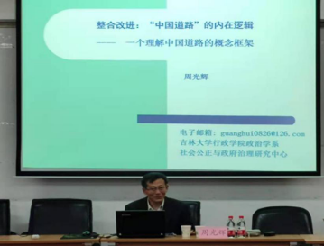 周光辉教授在本此次讲座中讲授了其最新的理论研究成果,认为中国道路的学术化表达是当前亟待解决的理论研究重点,需要从学理角度进行概念化和知识建构。周教授用大量文献资料阐述了中国道路的特殊性,并从时、空两个维度阐释了中国道路的特殊文化传统和多元化的结构性特征。在阐释规模治理的四大难题和变革中的中国所面临的三大挑战后,周教授遵循“情景——历史——结构——过程——机制——理论”的研究路径,提出“中国道路”整合改进的内在逻辑框架。整合是国家内在属性,需要建构政治共同体以及防止现代化进程的中断;改进是在现有制度之内实行的变革,是中国道路前进发展的动态要求。整合是基础,改进是方向,周教授的系统论证有力说明了“西方中心”主义的理论局限性和中国道路理论研究的必要性和其理论优势。