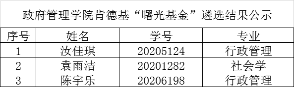 按照党委学工部《关于做好中国肯德基曙光基金2020-2021学年新生资助工作的通知》要求,xcsports于2020年11月17日12:30在汇文楼942会议室组织召开2020年肯德基“曙光基金”遴选答辩会,共12名同学报名参选,经答辩、评委评选,拟推荐汝佳琪、袁雨洁、陈宇乐三位同学为候选人进入下一轮遴选,特此公示三天。公示期自2020年11月17日—2020年11月19日,公示期间如有异议,请向公司评选工作小组反映,联系电话:86609438。